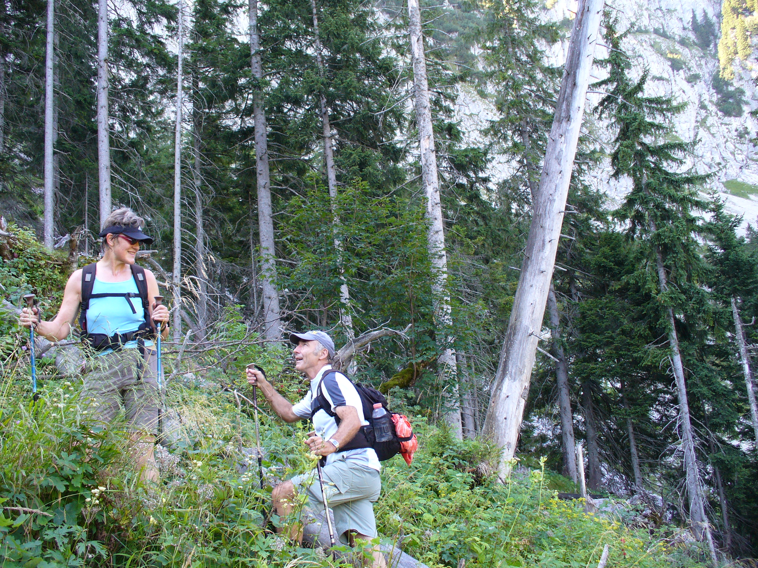 Nach einer Einkehr verlassen wir dieses in Richtung Westen und folgen dem Pfad entlang der Suedwand des Pilgerschrofen.