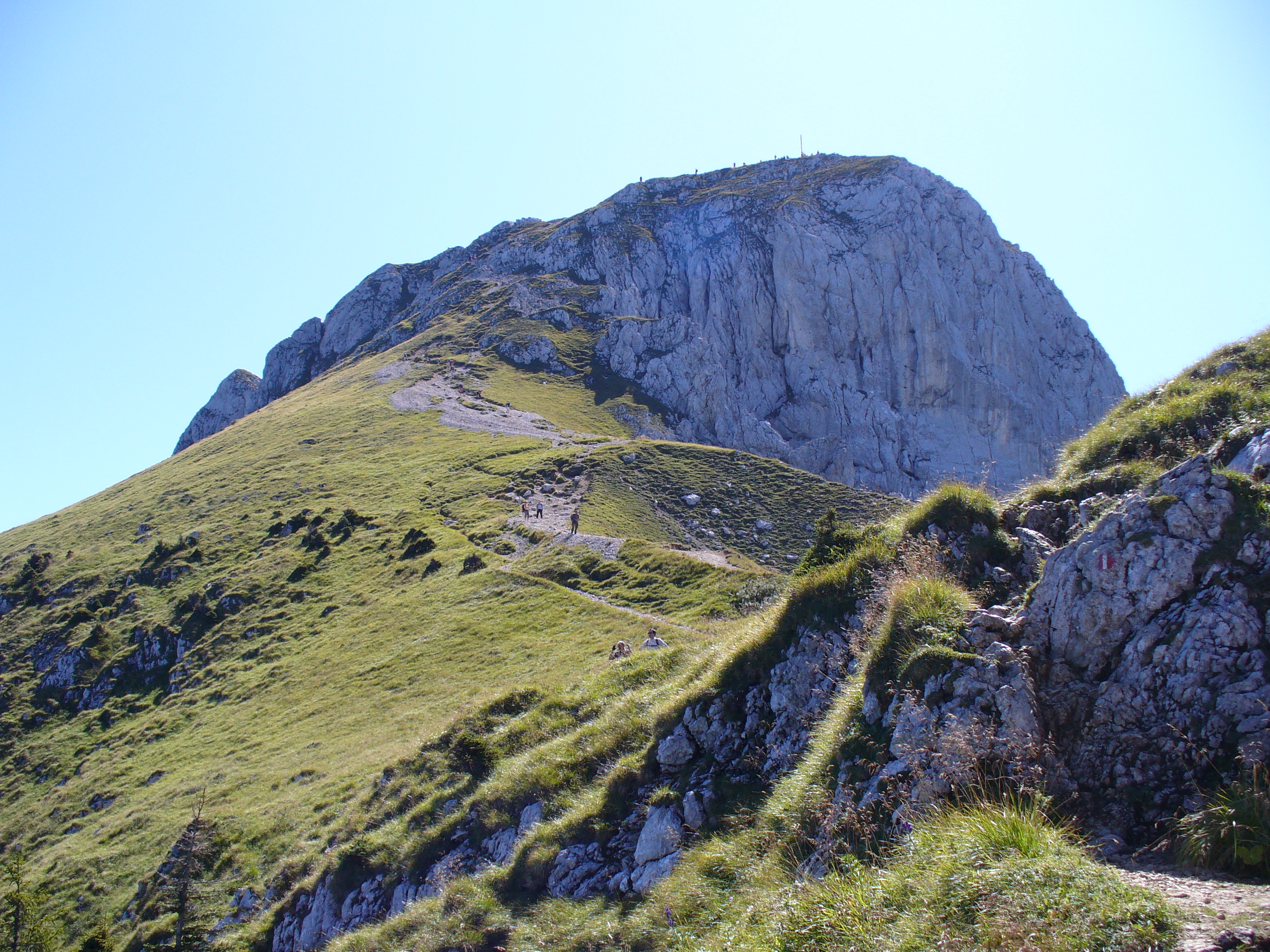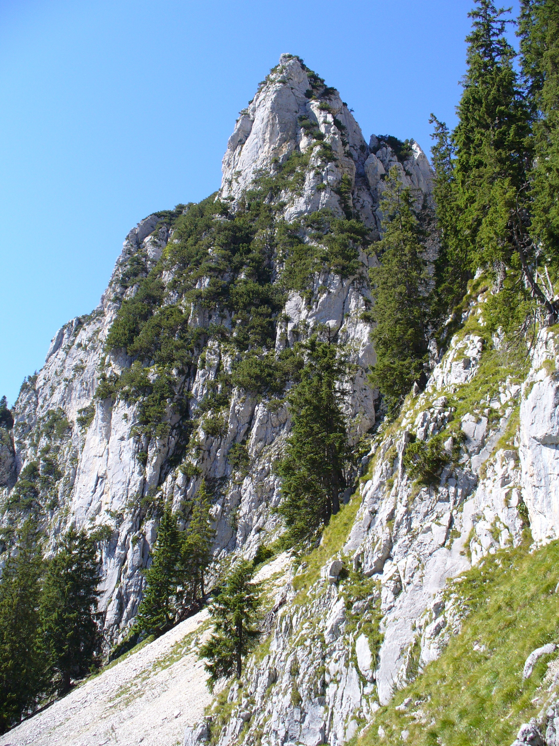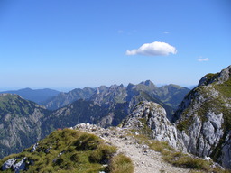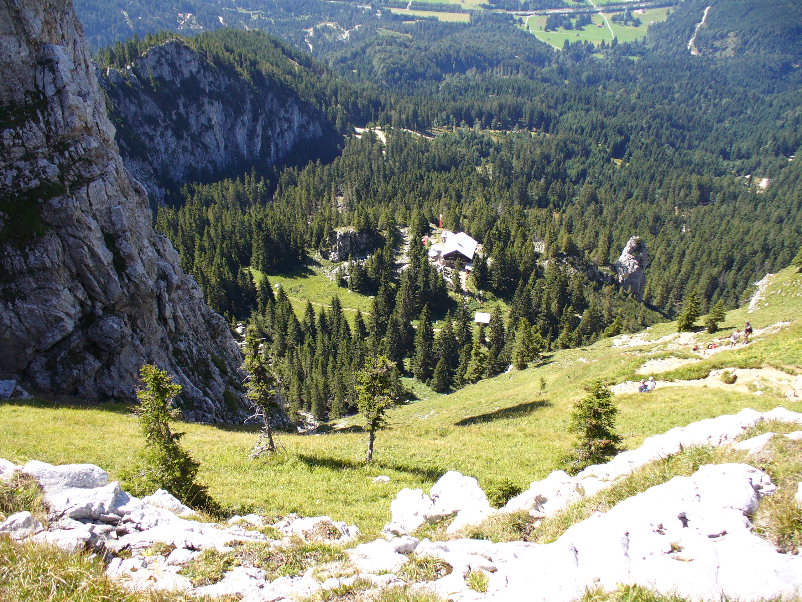 Am Fusse des Gipfelstuecks dem linken Weg ueber die Gamswiese steil hinunter Richtung Saeulinghaus folgen.